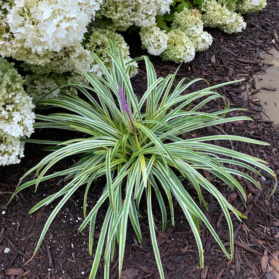 Variegated Liriope is the perfect finishing touch for gardens. It provides structure all year, softens hardscapes, and attracts bees and butterflies during its bloom cycle. Pair it with hostas, daylilies, or azaleas for a polished, professional look with minimal effort.