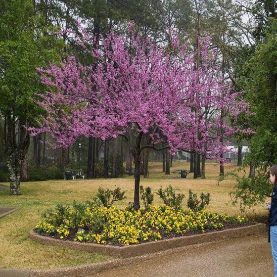 Planting your Forest Pansy Redbud Tree (Cercis canadensis ‘Forest Pansy’) begins with selecting the right location—choose a spot that receives full sun to partial shade for optimal flowering and foliage color. This tree thrives in moist, well-drained soil that is rich in organic matter, although it can tolerate a range of soil types. To plant, dig a hole twice as wide and just as deep as the tree’s root ball. Gently remove the tree from its container, loosen the roots, and place it in the hole with the top of the root ball level with the surrounding soil. Backfill with a mix of native soil and compost, water thoroughly to settle the soil, and apply a 2–3 inch layer of mulch around the base to retain moisture and suppress weeds. Be sure to keep mulch a few inches away from the trunk to prevent rot, and water the tree regularly during the first growing season to establish a strong root system. Space your Forest Pansy Redbud at least 15–20 feet from buildings, driveways, or other trees to allow for its mature size of 20–25 feet tall and wide. This ornamental tree makes a stunning focal point in front yards, mixed borders, or woodland gardens, offering year-round interest with its early spring blooms, rich purple foliage, and attractive branching structure. Proper planting ensures your Forest Pansy Redbud will thrive and deliver vibrant seasonal color and native beauty for years to come.