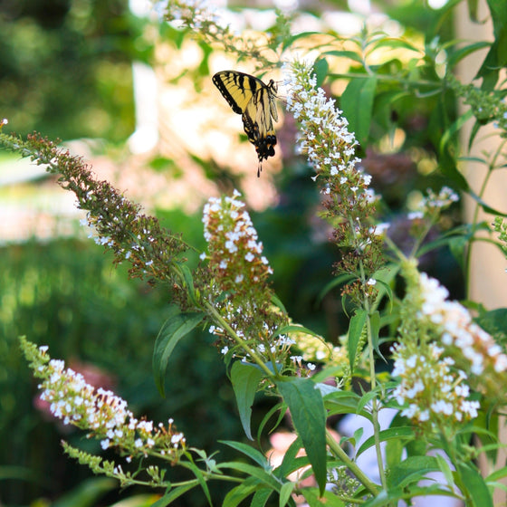 Buddleia ‘Nanho White’, also known as Nanho White Butterfly Bush, is a compact, fast-growing deciduous shrub prized for its fragrant white flower spikes that bloom from mid-summer through fall. The long, arching panicles are filled with nectar-rich blossoms that attract butterflies, bees, and hummingbirds, making it a must-have for pollinator gardens and wildlife-friendly landscapes. Its elegant, silvery-green foliage and airy form bring texture and brightness to garden beds, borders, and naturalized areas.