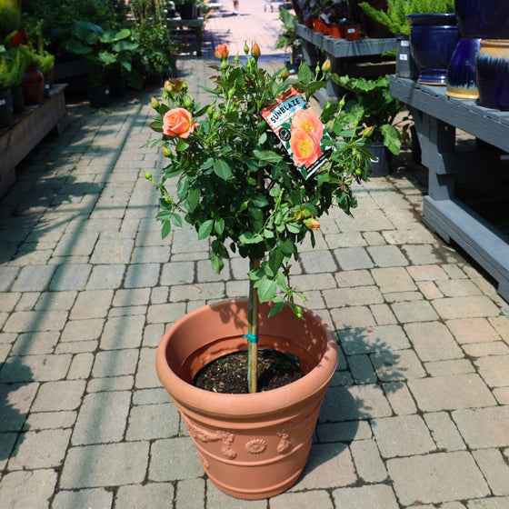 Ideal for USDA grow zones 5-11, you can enjoy blooms from spring through to the fall when you plant the Sunblaze Amber Rose Tree.