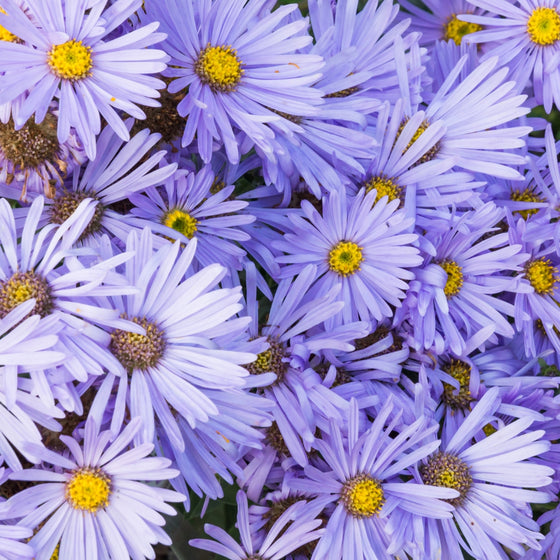 Plant Aster ‘Bluebird’ in full sun and well-drained soil for best results. Space plants about 18 to 24 inches apart to allow air circulation and room for mature growth. Dig a hole twice the width of the root ball, position the plant at soil level, and backfill with nutrient-rich soil. Water thoroughly after planting and apply a 2–3 inch mulch layer to retain moisture and suppress weeds. Aster ‘Bluebird’ establishes quickly—once rooted, it becomes drought-tolerant and incredibly easy to maintain.