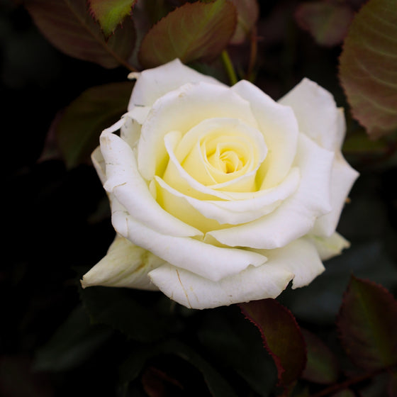 Pruning is an essential part of the art of growing lush rose bushes. You can help guide how your roses focus their energy by careful pruning, depending on the season. Make sure that you have a set of pruning shears that are well sharpened, sanitized, and large enough to make a clean cut on any sized branch. The biggest cut back should be in the fall, at least a few weeks before the first frost. Prune your rose shrubs down until the branches reach 18 to 24 inches up from the ground. Pruning as a part of winterization helps your rose bush focus on its roots while preparing for dormancy, and it allows time for the cuts to seal before the first frosts. Then, after the winter, prune again in the very early summer. This is a chance to remove any dead branches, and a 'soft prune' of a few inches can encourage more branches to grow. Lastly, throughout the blooming season, deadheading your shrubs can help create space and energy for new buds. Simply cut a rose bloom off as far down as the next red bump on the branch - that red bump indicates a potential new branch or bud. Since Pope John Paul II white roses make for wonderful cut roses with long stems, feel free to cut a few roses just as they are blooming (again, down to just above the signs of a new branch), so that you can enjoy your Pope John Paul II Hybrid Tea Roses both inside and outside of your home.