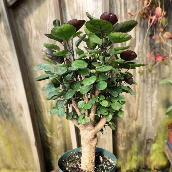 Aralia Fabian Plants are easy to grow as a houseplant require minimum maintenance and are hassle-free. The leaves are round, glossy, and have an interesting purplish color making it a perfect tropical piece for any room — a great starter plant for a bonsai addition to your home or workspace.