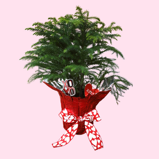 Norfolk Island Pine (Araucaria heterophylla) is a tropical house plant that doubles in style as a holiday tree. The smaller Norfolk Island Pines are perfect for decorating mantles, tabletops, and desks. As they grow and become taller, they are better situated as floor plant.