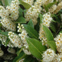 • Otto Luyken Laurel's white flower clusters and green foliage