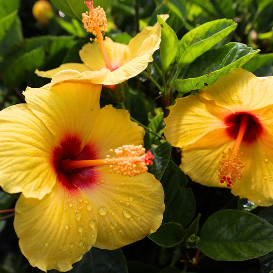 Tropical Hibiscus plants must be watered on a regular basis to avoid any risk of their soil drying out. During their first growing season, water deeply and on a strict schedule. They love to have moist soil and we recommend watering your hibiscus once a week to ensure they establish an extensive root system. In extremely hot climates, their soil dries out faster. The best way to fix this issue is to simply water more frequently than normally recommended.