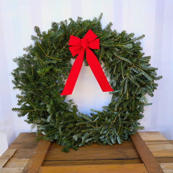 Our wreaths are freshly made to order with carefully selected premium Fraser Fir tips. They are thick and full and are suitable for hanging indoors or outdoors. The 24-inch is ideal for the average-size door. Aside from the traditional Fraser Fir Christmas Tree, the Fraser Fir Wreath may be the most recognized symbol of the holidays. This traditional medium for crafting a Fresh Wreath fills the home with the forest-fresh scent of the beloved Fraser Fir.