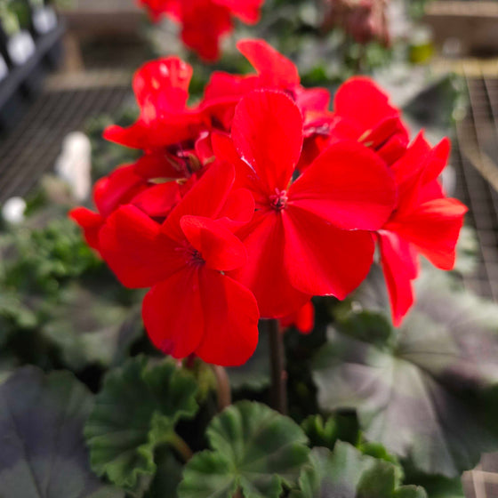 Red Geranium has the naturally mounded, upright habit that makes zonal geraniums such longtime favorites. It fills out nicely in containers and bedding displays without looking loose or messy too quickly, which makes it especially useful in areas that need to stay neat and colorful for weeks at a time. It has enough body to stand on its own in smaller pots, but it also blends well with trailing companions in larger mixed arrangements.